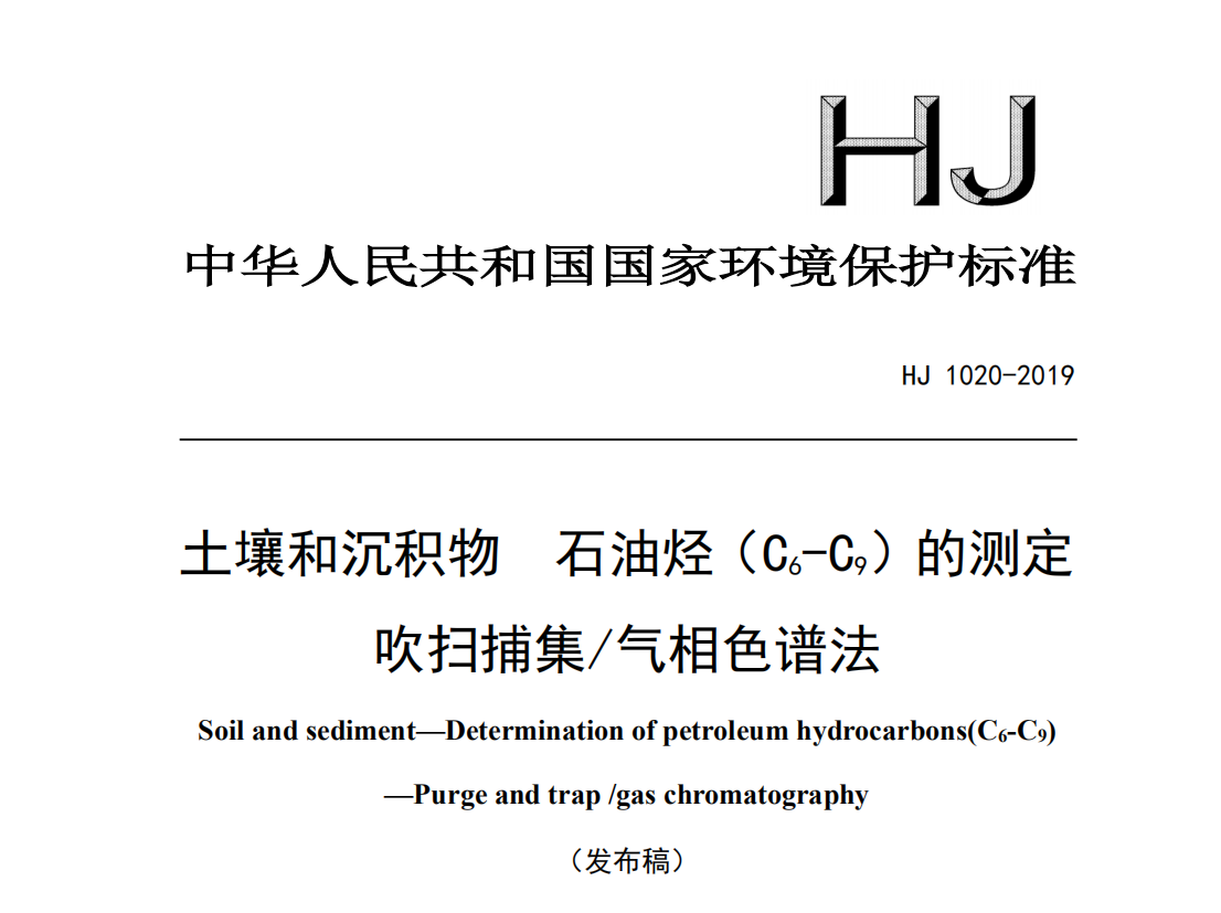 HJ 1020-2019 土壤和沉積物 石油烴(C6-C9)的測定 吹掃捕集氣相色譜法 HJ1020-2019土壤和沉積物石油烴(C6-C9)的測定吹掃捕集/氣相色譜法 本標準規(guī)定了測... 更新日期:2020-05-06 下載包(1)