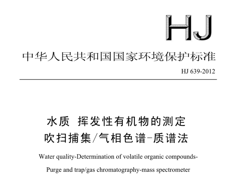 HJ639-2012水質(zhì)揮發(fā)性有機物的測定吹掃捕集氣相色譜-質(zhì)譜法 本標準規(guī)定了測定水中揮發(fā)性有機物的吹掃捕集/氣相色譜-質(zhì)譜法。 本標準適用于海水、地下水、地表水、生... 更新日期:2020-05-06 下載包(1)