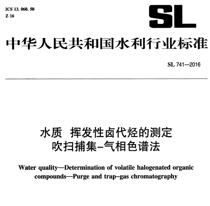 SL 741-2016 水質(zhì) 揮發(fā)性鹵代烴的測定吹掃捕集-氣相色譜法 GB/T17130-1997水質(zhì)揮發(fā)性鹵代烴的測定頂空氣相色譜法 本標準適用于水中揮發(fā)性鹵代烴(三... 更新日期:2020-05-06 下載包(1)