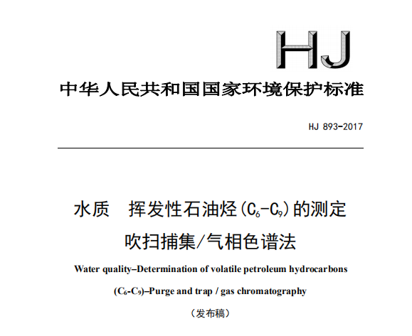 HJ 893-2017 水質(zhì) 揮發(fā)性石油烴(C6-C9)的測定 吹掃捕集氣相色譜法(發(fā)布稿) HJ 893-2017 水質(zhì) 揮發(fā)性石油烴(C6-C9)的測定 吹掃捕集氣相色譜法(發(fā)布稿) 更新日期:2020-04-13 下載包(1)