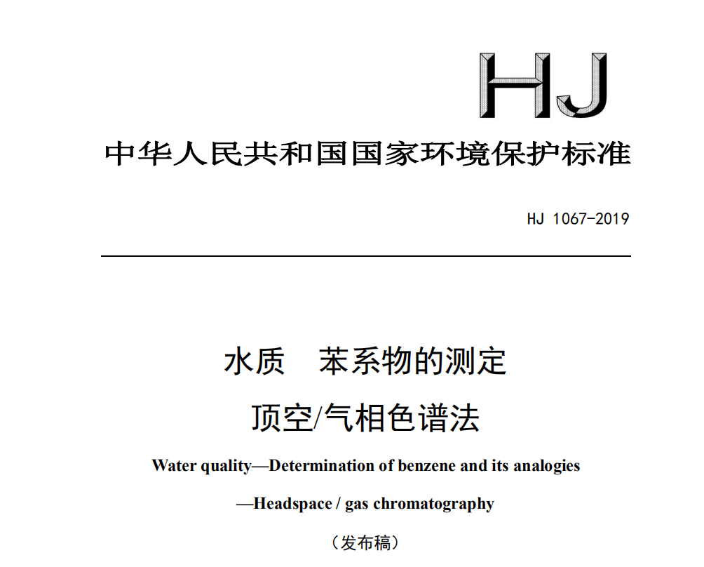 HJ1067-2019水質(zhì)苯系物的測定頂空.氣相色譜法 HJ 1067-2019 水質(zhì) 苯系物的測定 頂空/氣相色譜法本標(biāo)準(zhǔn)規(guī)定了測定水中苯系物的頂空/氣相... 更新日期:2020-05-29 下載包(1)