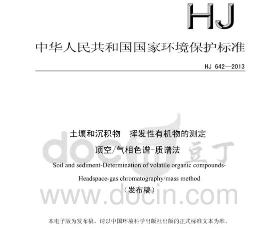 HJ642-2013土壤和沉積物揮發(fā)性有機(jī)物的測定頂空氣相色譜—質(zhì)譜法 揮發(fā)性有機(jī)物(VOCs)是指沸點(diǎn)在50-250 C 范圍內(nèi)的一系列化合物,因其廣泛應(yīng)用于化工原料和有... 更新日期:2020-05-29 下載包(1)