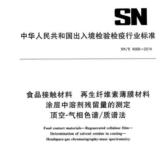SNT 4068-2014 食品接觸材料 再生纖維素薄膜材料 涂層中溶劑殘留量的測(cè)定 頂空-氣相色譜質(zhì)譜 SN/T4054-2014出口保健食品中育亨賓、伐地那非、西地那非、他達(dá)那非的測(cè)定液... 更新日期:2020-05-09 下載包(1)