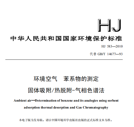 HJ 583-2010 環境空氣 苯系物的測定 固體吸附熱脫附-氣相色譜法 本標準規定了測定空氣中苯系物的固體吸附/熱脫附-... 更新日期:2020-04-29 下載包(1)