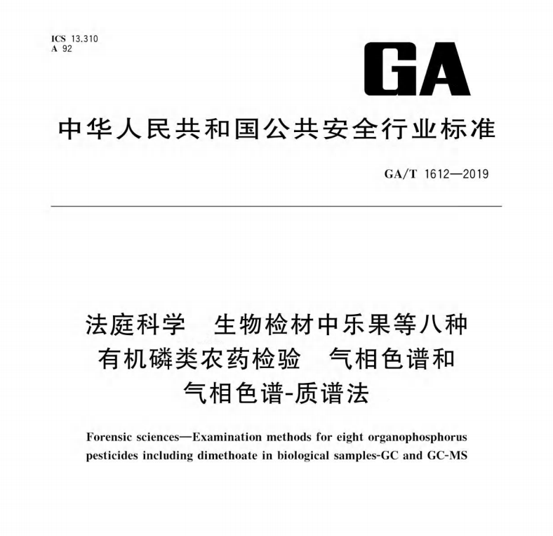 GAT16122019法庭科學(xué)生物檢材中樂果等八種有機(jī)磷類農(nóng)藥檢驗(yàn)氣相色譜和氣相色譜質(zhì)譜法 更新日期:2022-12-30 下載包(1)